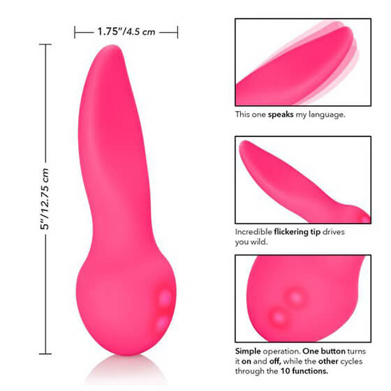 • UNIQUE TONGUE SHAPE: Sensual tongue shape delivers pinpoint control and indulgent pleasure; For an ultra smooth surface, this slim flickering vibe is covered in a premium Silicone with two sleek profile buttons.